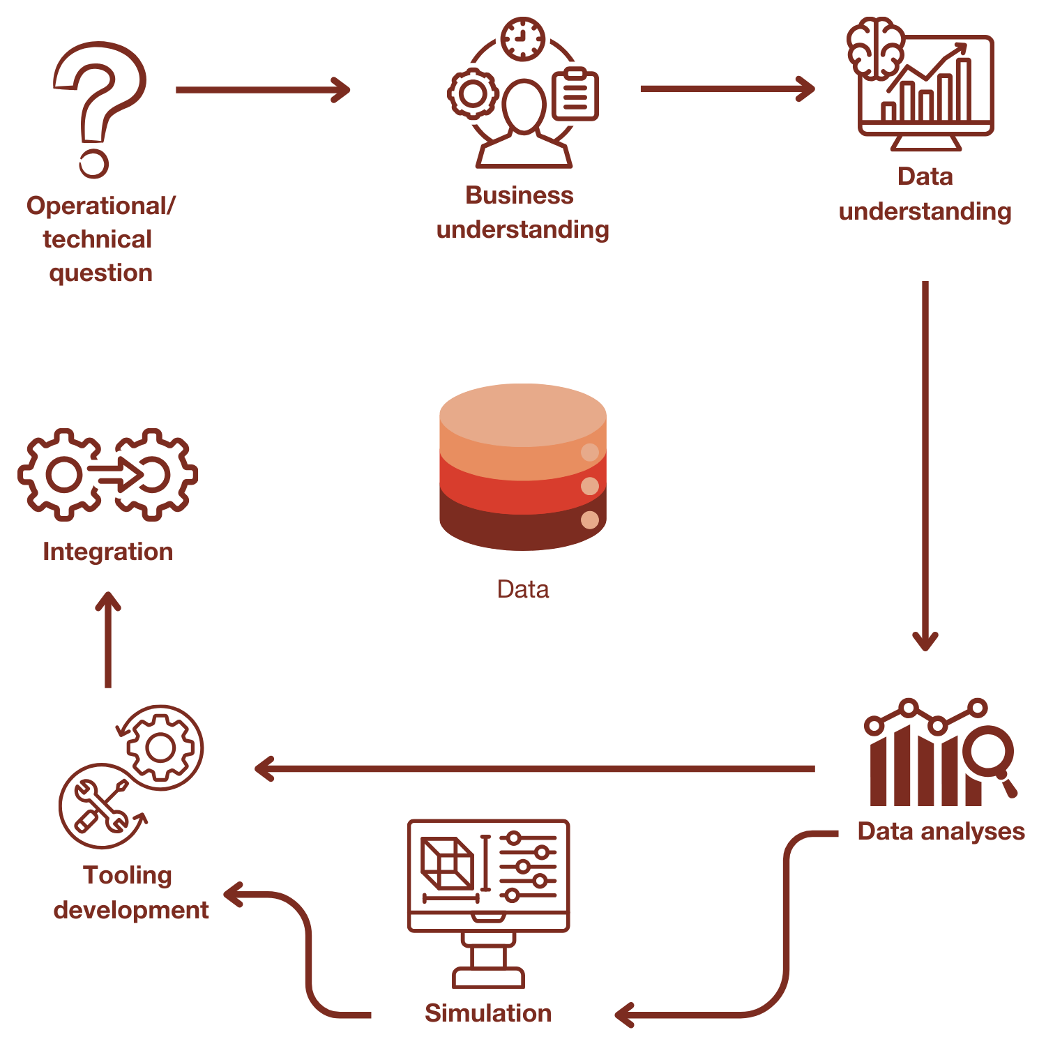 Based on these insights, the real development work is started, where, depending on the demand, a simulation is made or a useful tool is developed. With a simulation we can analyse deeper, and with a tool we give the customer the ability to repeat analyses themselves in the future without additional manual work.